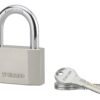 Description: Steel body. Nickel-plated cemented steel handle. Pin mechanism. Double locking by balls. Hole flow of water. 3 reversible keys. Finish: Satin chrome. Version: Use: Construction site.