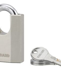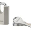 Description: Steel body. Nickel-plated cemented steel handle. Pin mechanism. Double locking by balls. Hole flow of water. 3 reversible keys. Finish: Satin chrome. Version: Use: Construction site.