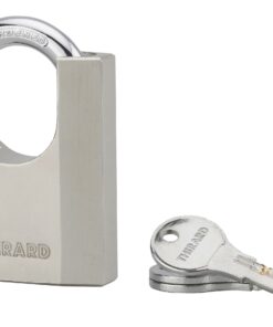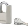 Description: Steel body. Nickel-plated cemented steel handle. Pin mechanism. Double locking by balls. Hole flow of water. 3 reversible keys. Finish: Satin chrome. Version: Use: Construction site.