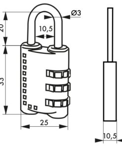 Description : Padlock Body alloy molded. Nickel-plated steel handle. Virole mechanism. Editable combination. Finish: Matching colors Version: Use: Luggage