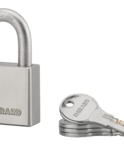 Description: Stainless steel padlock. Stainless steel handle. Pin mechanism. Double locking by balls. Hole flow of water. 4 reversible keys. Finish: Brushed stainless steel. Version: Use: Outdoor.