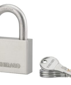 Description : Stainless steel padlock. Stainless steel handle. Pin mechanism. Double locking by balls. Hole flow of water. 4 reversible keys. Finish: Brushed stainless steel. Version: Use: Outdoor.
