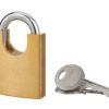 Description: Solid brass body with shoulder handle protector. Nickel-plated cemented steel handle. Double anchoring. Pin mechanism. 2 nickel-plated steel keys. Finish: Polished brass Version: Additional keys on model. Without manufacturing on imposed number. Padlock on the same combination. Use: Outdoor