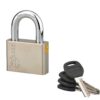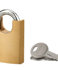 Description: Solid brass body key padlock with shoulder handle protector. Nickel-plated cemented steel handle. Double anchoring. Pin mechanism. 2 nickel-plated steel keys. Finish: Polished brass Version: Additional keys on model. Without manufacturing on imposed number. Padlock on the same combination. Use: Outdoor