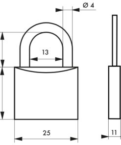 Description : One-piece brass body padlock. Nickel-plated cemented steel handle. Pin mechanism. Simple anchoring. 2 nickel-plated steel keys. Finish: Polished brass Version: Additional keys on model. Without manufacturing on imposed number. Use: Luggage