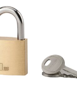 Description : One-piece brass body padlock. Nickel-plated cemented steel handle. Pin mechanism. Simple anchoring. 2 nickel-plated steel keys. Finish: Polished brass Version: Additional keys on model. Without manufacturing on imposed number. Use: Luggage