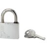 Description : Padlock Body brass chrome monobloc. Stainless steel handle. Pin mechanism. Double anchoring. Water flow hole. 2 nickel-plated steel keys. Finish: Chrome Version: Handle 1/2 high for size 30 mm. High handle for size 40 mm. Additional keys on model. Without manufacturing on imposed number. Use: Outdoor, anti-corrosion