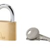 Description : One-piece brass body padlock. Nickel-plated cemented steel handle. Pin mechanism. Double anchoring. 2 nickel-plated brass keys. Finish: Polished brass Version: Additional keys on number. Padlock on imposed number and on the same combination. Use: Indoor