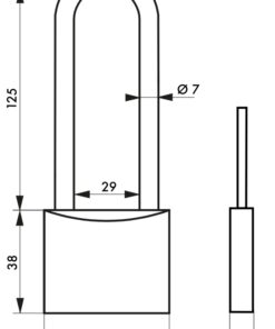 Description : Monobloc brass body. Nickel-plated cemented steel handle. Pin mechanism. Double anchoring. 2 nickel-plated steel keys. Finish: Polished brass Version: Single anchor for size 30 – 35 mm. Semi high handle for size 30-40-50 mm. High handle for size 40-45 mm. Additional keys on model. Without manufacturing on imposed number. Padlock on same combination for size 30, 35, 40, 45, 50 mm. Use: Indoor