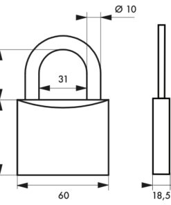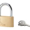 Description : One-piece brass body padlock. Nickel-plated cemented steel handle. Pin mechanism. Double anchoring. 2 nickel-plated steel keys. Finish: Polished brass Version: High handle for size 60 mm. Additional keys on model. Without manufacturing on imposed number. Use: Construction site
