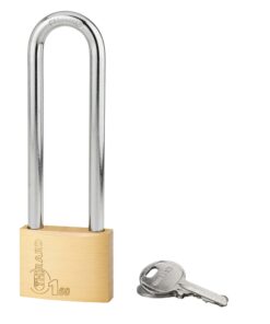 Description : Monobloc brass body. Nickel-plated cemented steel handle. Pin mechanism. Double anchoring. 2 nickel-plated steel keys. Finish: Polished brass Version: High handle for size 60 mm. Additional keys on model. Without manufacturing on imposed number. Use: Construction site