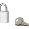 Description : Padlock Aluminum body. Nickel-plated steel handle Pin mechanism. Simple anchoring. 2 nickel-plated brass keys Finish: Aluminium Version: With PVC shell. Use: Luggage