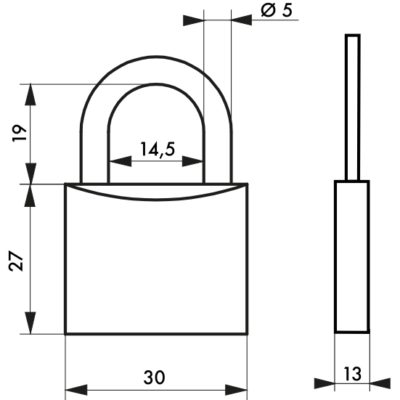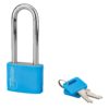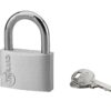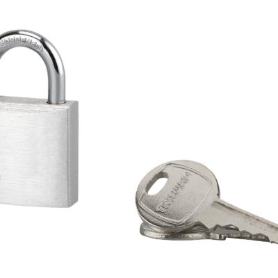 Description: Aluminum body. Nickel-plated cemented steel handle. Pin mechanism. Double anchoring. Padlock with 2 nickel-plated brass keys. Finish: Aluminum Version: With PVC shell Use: Interior