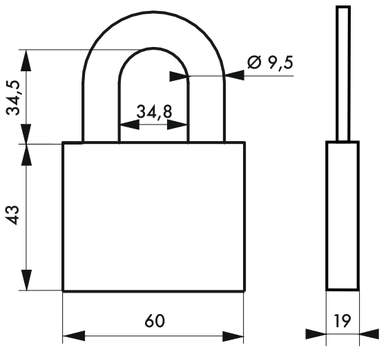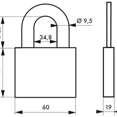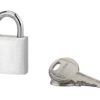Description: Aluminum body. Nickel-plated cemented steel handle. Pin mechanism. Double lock. 2 keys. Finish: Brushed aluminum Version: Use: Construction site