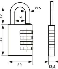 Description: Aluminum body. Nickel-plated steel handle. Virole mechanism. Editable combination. Finish: Aluminum Version: Use: Interior