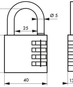 Description : Alloy body padlock. Nickel-plated steel handle. Virole mechanism. Editable combination. Finish: Brass Version: Use: Interior