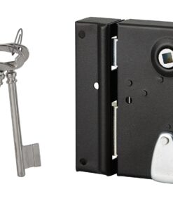Description: Arched steel trunk and striker. Steel bolt. Steel U-turn. Long steel barrel. 35 mm. 1-turn mechanism. Reversible 1/2 tower bolt for door opening to the outside. Square 7 mm. 2 nickel-plated keys. (1 galvanized key in tray packaging). 6 variures. Key entry and steel clutter. Finish: Epoxy black granite Version: With shaved headrest on chest and striker for gate. Right and left. Usage: