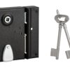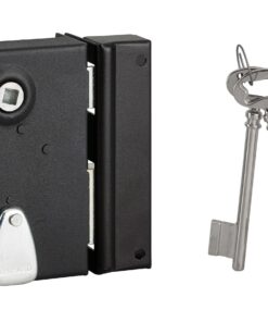 Description: Arched steel trunk and striker. Steel bolt. Steel U-turn. Long steel barrel. 35 mm. 1-turn mechanism. Reversible 1/2 tower bolt for door opening to the outside. Square 7 mm. 2 nickel-plated keys. (1 galvanized key in tray packaging). 6 variures. Key entry and steel clutter. Finish: Epoxy black granite Version: With shaved headrest on chest and striker for gate. Right and left. Usage: