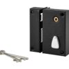 Description: Arched steel trunk and striker. Bolt and half-turn steel protruding 5 mm. Alloy barrel length 45 mm. Steel key entry on safe. Mechanism with 6 gorges, 2 turns. Square 7 mm. 2 nickel-plated keys. 20 variures. Steel key entry. Brass clutter. Finish: Epoxy black granite Version: Right and left Use: