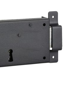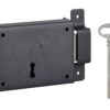 Description: Arched steel chest. Arched steel leg striker. Alloy bolt. Long steel barrel. 35 mm. 1 polished wrench (2 keys for 391117/391127). 6 variures. Finish: Epoxy black granite Version: Right and left Use: