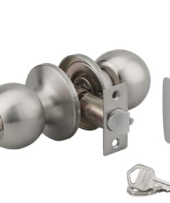 Description: Outer pommel in stamped steel with pin safety cylinder. Inner knob in stamped steel with condemnation button. Reversible 1/2 tower bolt with safety device and rectangular headrest. Flat striker. Axis adjustable 60/70mm. 3 nickel-plated steel wrenches. Finish: Matte chrome. Polished brass. Version: 60 mm axis case Use: Exterior door ep. 35 to 50 mm