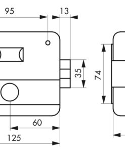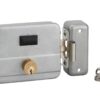 Description: Trunk and striker stamped steel. Reversible mechanism. Works with low voltage current. 12 volts. Pin cylinder Ø 24 length 50 mm. Axis adjustable from 50 to 70 mm. 3 nickel-plated keys. Accessories: fastening bracket, contact padsIn accordance with the requirements of the European Electromagnetic Compatibility Directive 89/336/EEC Finish: Epoxy grey Version: Double cylinder and button Use: