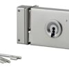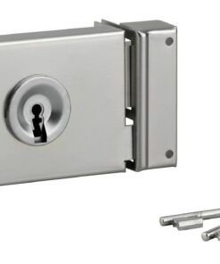 Description: Arched steel trunk and striker. Steel bolt and U-turn. Steel barrel length 35 mm. Brass key entry on safe. 2-turn mechanism. Reversible 1/2 tower bolt for door opening to the outside. Square 6 mm – 2 nickel-plated keys – 6 variures. Key entry and steel clutter. Finish: Zingué Version: Right and left Ref 000119 – 000129 😛 shaft and half-turn steel protruding 5 mm Use: