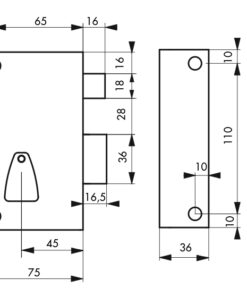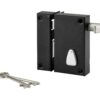 Description: Arched steel trunk and striker. Steel bolt. Steel U-turn. Long alloy barrel. 45 mm. Mechanism with 6 gorges 2 turns with pull or clutter. Square 7 mm. 2 nickel-plated keys. 20 variures. Steel key entry. A DRAW: Reminder of the U-turn by the key Finish: Epoxy black granite Version: A draw. Right and left. Usage: