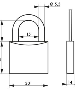 Description : One-piece brass body padlock. Nickel-plated cemented steel handle. Pin mechanism. Double anchoring. 2 nickel-plated steel keys. Finish: Polished brass Version: Single anchor for size 30 – 35 mm. Semi high handle for size 30-40-50 mm. High handle for size 40-45 mm. Additional keys on model. Without manufacturing on imposed number. Padlock on same combination for size 30, 35, 40, 45, 50 mm. Use: Indoor