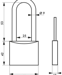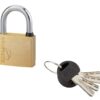 Description : One-piece brass body padlock. Nickel-plated cemented steel handle. Pin mechanism. Double anchoring. 2 nickel-plated steel keys. Finish: Polished brass Version: Single anchor for size 30 – 35 mm. Semi high handle for size 30-40-50 mm. High handle for size 40-45 mm. Additional keys on model. Without manufacturing on imposed number. Padlock on same combination for size 30, 35, 40, 45, 50 mm. Use: Indoor