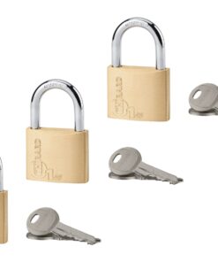 Description : Monobloc brass body. Nickel-plated cemented steel handle. Pin mechanism. Double anchoring. 2 nickel-plated steel keys. Finish: Polished brass Version: Single anchor for size 30 – 35 mm. Semi high handle for size 30-40-50 mm. High handle for size 40-45 mm. Additional keys on model. Without manufacturing on imposed number. Padlock on same combination for size 30, 35, 40, 45, 50 mm. Use: Indoor