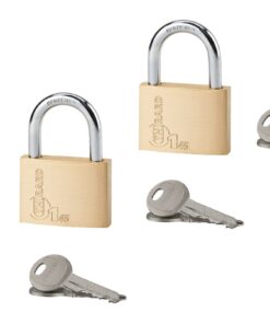 Description : Monobloc brass body. Nickel-plated cemented steel handle. Pin mechanism. Double anchoring. 2 nickel-plated steel keys. Finish: Polished brass Version: Single anchor for size 30 – 35 mm. Semi high handle for size 30-40-50 mm. High handle for size 40-45 mm. Additional keys on model. Without manufacturing on imposed number. Padlock on same combination for size 30, 35, 40, 45, 50 mm. Use: Indoor
