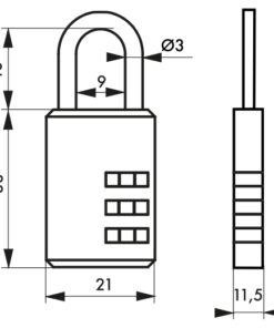 Description : Padlock Body alloy molded. Nickel-plated steel handle. Mechanism with 3 viroles. Modifiable combination, 1,000 possible combinations. Finish: Black Version: Use: Luggage