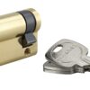 Description: Body and cover in chromed brass. Attachment by pointed screw on the body of the profiled cylinder. Finish: Chrome Version: Use: