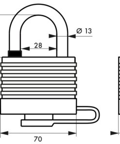Description: Body with steel slats. Nickel-plated cemented steel handle. Pin mechanism. Double anchoring. 2 nickel-plated brass keys. Finish: PVC assorted colors Version: Ref: 090047 without PVC protection. Use: Construction site