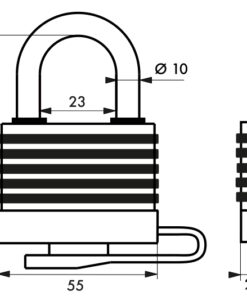 Description: Body with steel slats. Nickel-plated cemented steel handle. Pin mechanism. Double anchoring. 2 nickel-plated brass keys. Finish: PVC matching colors Version: Semi-high handle. Additional keys on model. Without manufacturing on imposed number. Padlock on the same combination. Use: Outdoor
