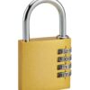 Description : Alloy body padlock. Chrome steel handle. Mechanism with 4 viroles. Editable combination. 10,000 possible combinations. Finish: Brass Version: Use: Interior