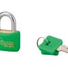Description : PVC sheathed monobloc brass body. Nickel-plated cemented steel handle. Pin mechanism. Double anchoring. 2 PVC sheathed nickel-plated steel keys. Finish: GREEN, PINK, BLUE, BLACK AND YELLOW PVC. Version: Additional model keys. Without manufacturing on imposed number. Padlock on the same combination for size 40 mm. Use: Indoor