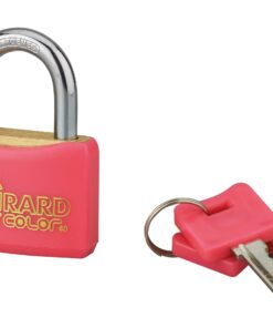 Description : Padlock Body brass monobloc sheathed PVC. Nickel-plated cemented steel handle. Pin mechanism. Double anchoring. 2 PVC sheathed nickel-plated steel keys. Finish: GREEN, PINK, BLUE, BLACK AND YELLOW PVC. Version: Additional model keys. Without manufacturing on imposed number. Padlock on the same combination for size 40 mm. Use: Indoor