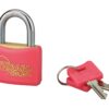 Description : Padlock Body brass monobloc sheathed PVC. Nickel-plated cemented steel handle. Pin mechanism. Double anchoring. 2 PVC sheathed nickel-plated steel keys. Finish: GREEN, PINK, BLUE, BLACK AND YELLOW PVC. Version: Additional model keys. Without manufacturing on imposed number. Padlock on the same combination for size 40 mm. Use: Indoor