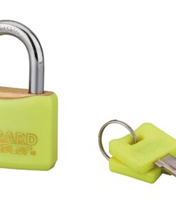 Description : Padlock Body brass monobloc sheathed PVC. Nickel-plated cemented steel handle. Pin mechanism. Double anchoring. 2 PVC sheathed nickel-plated steel keys. Finish: GREEN, PINK, BLUE, BLACK AND YELLOW PVC. Version: Additional model keys. Without manufacturing on imposed number. Padlock on the same combination for size 40 mm. Use: Indoor