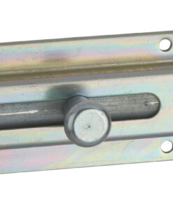 Description: Arched steel body. Sliding flat bolt. Arched steel striker. Round button. Padlock holder paw. Finish: Zingué