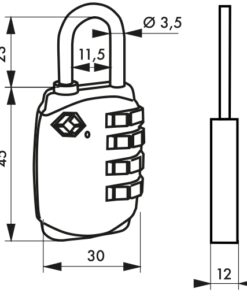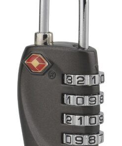 Moulded alloy body. Nickel plated steel shackle. Dial mechanism. Resettable combination.