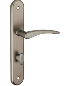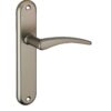 Description: Stamped aluminum plates. Molten aluminum crutches. square steel 7 mm. Screws secable metals. Inter-axis fixing 165 mm / 195mm. Finish: Nickel-plated satin Version: Without hole for interior door. With condemnation button for bathroom door and W-C. With key hole for interior and exterior door. With European cylinder hole for exterior door. Usage: