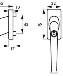 Window handle BEQUILLE WINDOW key color F2 with laying screws