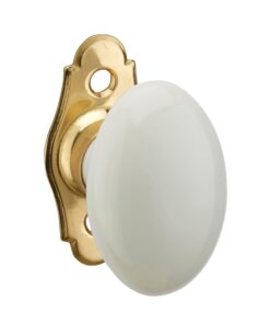 Description: Porcelain oval button. Brass frame. Square steel 7Vis of laying brass steel. Finish: White Version: Use:
