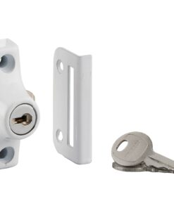 Description: Molded alloy body. Flat striker. Glitter cylinder. 2 brass wrenches. Finish: White lacquered Version: Use: Applied installation on wooden window with protruding frame.