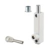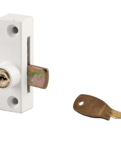 Description: Molded alloy body. Glitter cylinder. 1 key. Finish: Lacquered white Version: Use: Applied installation on metal window opening in the French way.