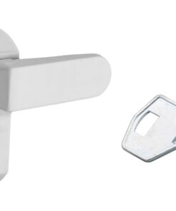 Description: Molded alloy body. Cable for recovery. 1 key. Finish: White lacquered Version: Use: Applied installation on wooden window with protruding frame.